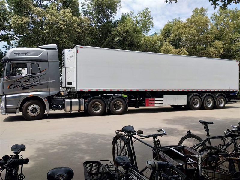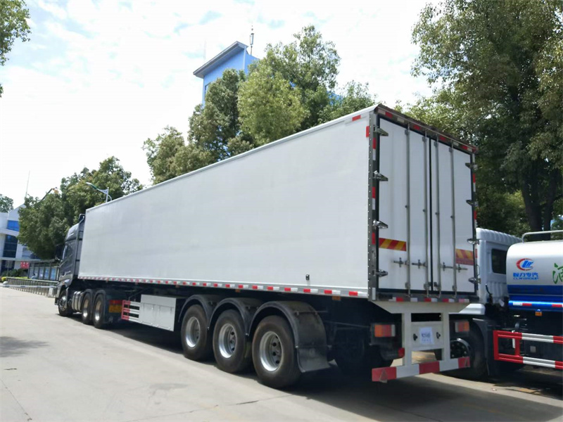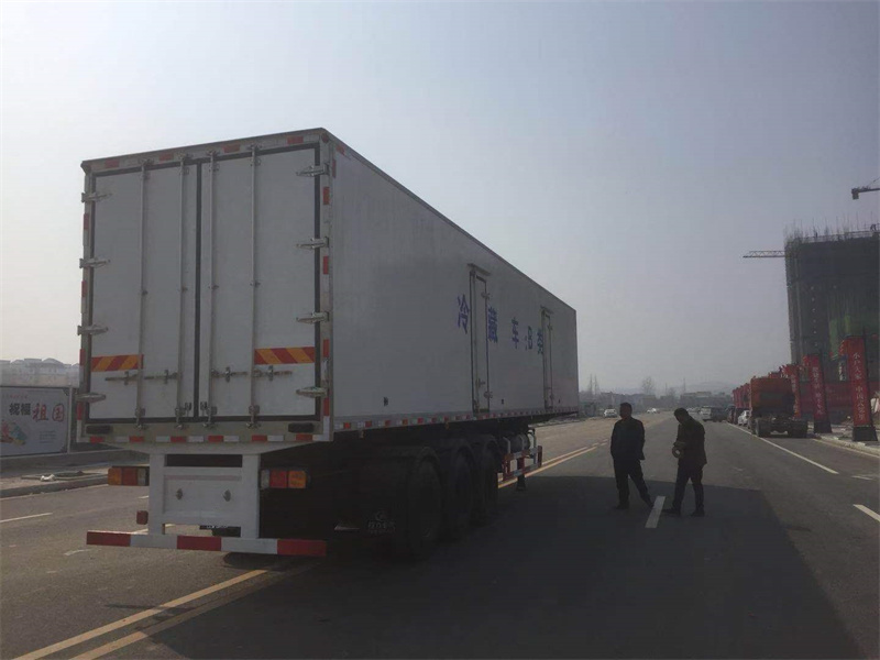 可移動屠宰車配備三軸13噸原廠全新富華橋,16噸剎車片,12R22.5真空胎,90#牽引銷,帶ABS。廂體材質(zhì)為內(nèi)外玻璃鋼板制作,中間10CM厚聚氨酯保溫板,高強(qiáng)度環(huán)保天然樹脂膠,采用國內(nèi)先進(jìn)的16米液壓壓板機(jī)壓制一次成型,鋁合金型材包邊,門框、門鎖件為不銹鋼,底板上鋪鋁合金通風(fēng)槽,廂體右側(cè)中靠前開單側(cè)門,選裝國內(nèi)知名品牌凱雪、進(jìn)口美國開利或美國冷王獨(dú)立制冷機(jī)組,最低溫度可達(dá)-18度。