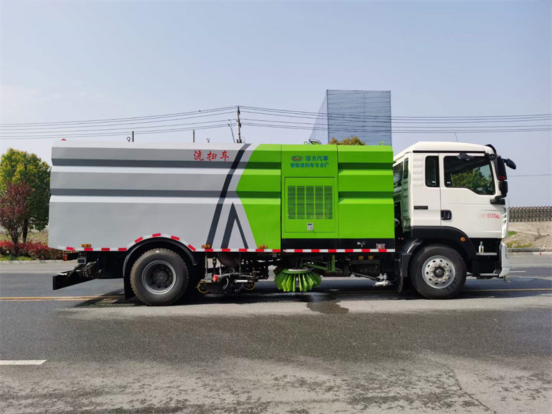 重汽豪沃洗掃車(chē)上裝配置:水箱容積9方/垃圾箱容積7方,水箱及垃圾箱采用不銹鋼板材制作,海德瑞沃電磁閥組及油缸。中置2掃盤(pán)掃刷帶吸盤(pán)、高品質(zhì)免維護(hù)風(fēng)機(jī)。副機(jī)采用康明斯六缸170馬力發(fā)動(dòng)機(jī),德國(guó)品孚高壓泵(前路沿/側(cè)噴/中噴/手持高壓沖洗/垃圾箱自潔/后噴霧)低壓沖洗,高低水位報(bào)警室內(nèi)3監(jiān)控及多種語(yǔ)音報(bào)警功能。尾部箭頭方便用戶作業(yè)用車(chē)。
