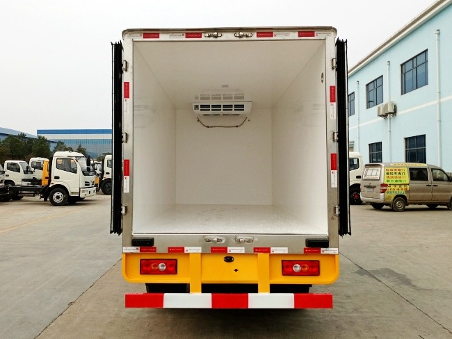 四、選裝配置:導軌肉鉤、T型通風槽、右側開側門、溫度實時監控帶打印裝置、裝海鮮廂體內部面料必須選裝不銹鋼制造、可選裝12V-24V外接電源(車輛在停止時,廂體通過外接電源進行制冷)。