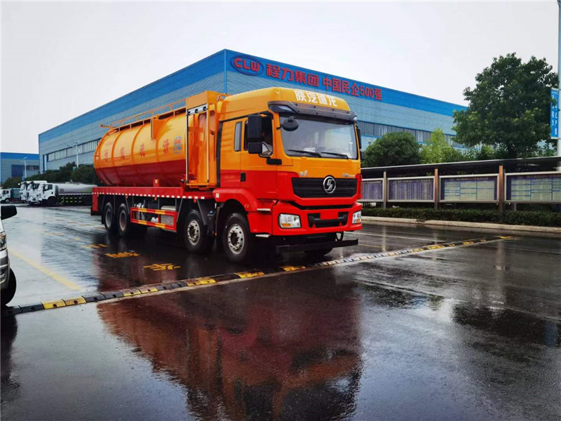 陜汽德龍國六前四后八程力牌CL5312GQW6CC 新M3000清洗吸污車人性化設計,最實用的4橋清洗吸污車,底盤配置:濰柴發動機460馬力,輪胎:12.00R20,底盤后橋加固(四騎馬螺栓),M3000加長高頂駕駛室,液壓懸置、空氣主座椅、駕駛室手動翻轉、金屬保險杠、電動空調、電動搖窗機、國產轉向機、國產離合器、備胎架、國產四通道ABS、搖臂式遠程油門控制裝置、天行健智雅版BD車載終端、變速箱后取力。
